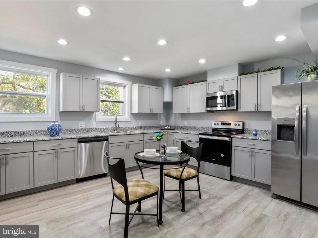 Welcome to this beautiful, fully renovated home, offering a seamless blend of modern upgrades and thoughtful design. From top to bottom, no detail has been overlooked in this complete interior gut renovation. The main level boasts a stunning, expansive new kitchen featuring: granite countertops, brand-new cabinets, a vented stainless steel microwave, and a full suite of stainless steel appliances and recessed LED lighting. A convenient laundry area includes washer and dryer hookups for added ease. Enjoy comfort and privacy with brand new low-E windows throughout the home, as well as 2 inch faux blinds, covering the living room and half bath windows. All rooms are fitted with recessed lighting. The living room and bedrooms includes a ceiling fan. The home retains its original character with preserved doors. Upstairs you'll find cozy carpeted bedrooms and two beautifully updated bathrooms with durable laminated, flooring. The spacious primary suite includes a private en-suite bathroom for your comfort. Modern mechanical upgrades include a new gas furnace for efficient heating and central air conditioning plus a Mini Split in each bedroom to keep the home cool during warmer months and heated during cold months. The property also includes a new water heater. The unfinished basement provides extra storage or customization options. Outside enjoy relaxing on the full length front porch, perfect for unwinding or entertaining. Roof is 4 years old. Property includes a detached garage in "as is" condition, requiring significant repair, offering potential for renovation or replacement. All renovation work has been completed with proper permits, giving peace of mind to the next proud homeowner.
